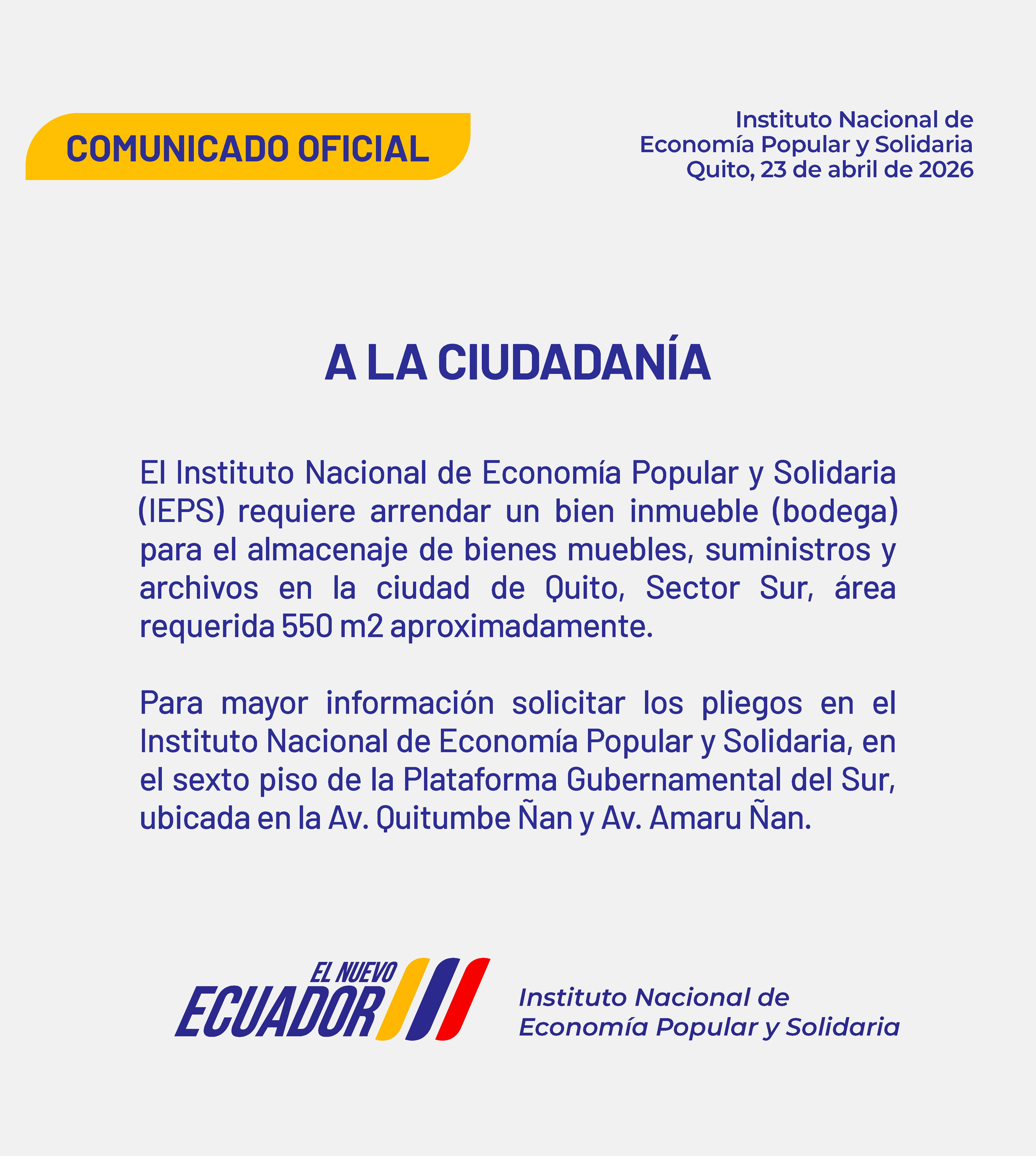 - Inicio de proceso de contratación para material comunicacional PROFECPIAM